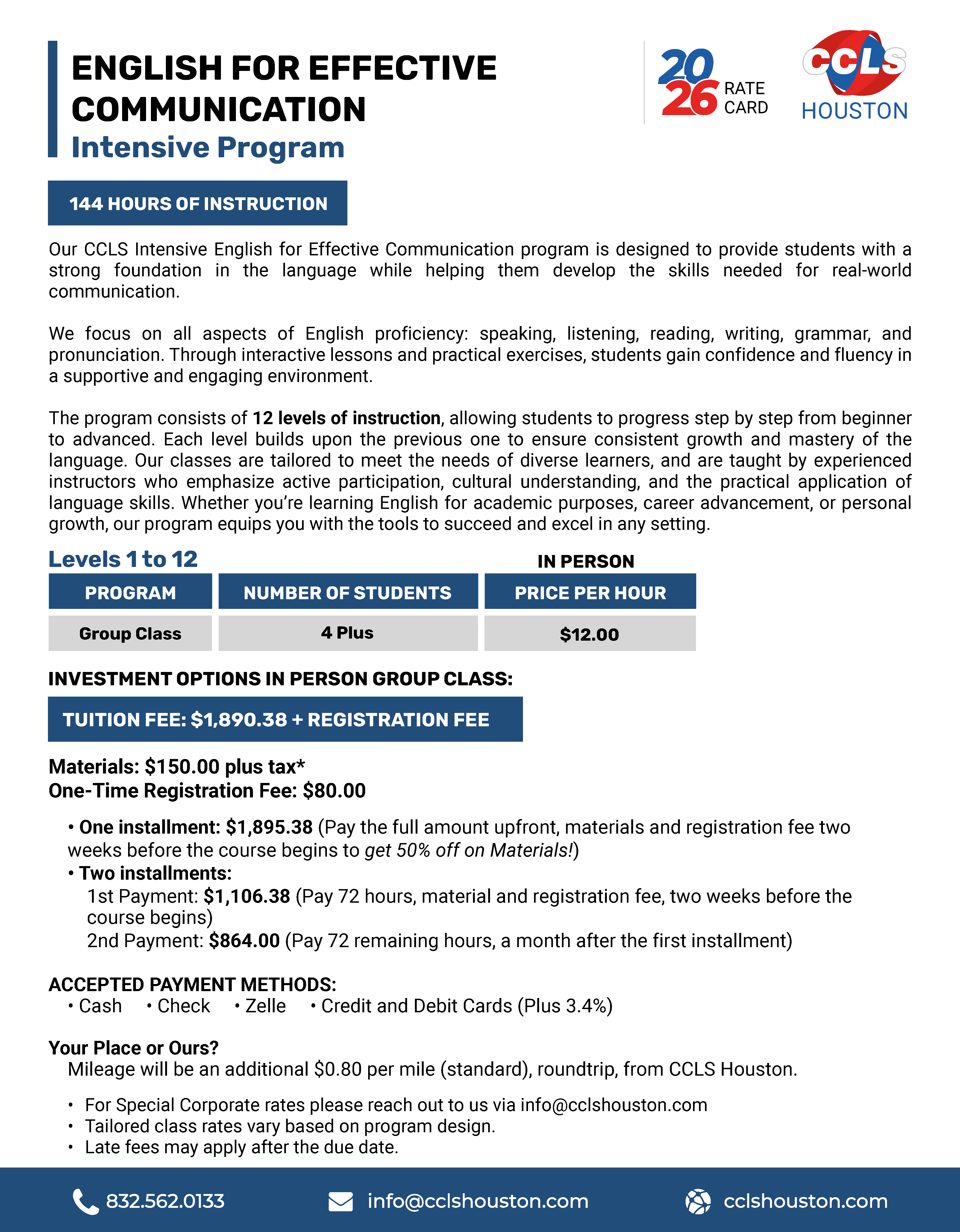 Our CCLS English Intensive Course program is designed to provide students with a strong foundation in the language while helping them develop the skills needed for real-world communication.